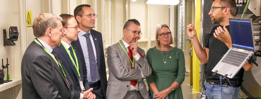 On September 20, the Swedish Minister for Education, Mats Persson, presented the proposed Budget Bill for 2024 at MAX IV in Lund – proposing 40 million SEK in extra funding to MAX IV to ensure that the important research can continue in the coming year.
