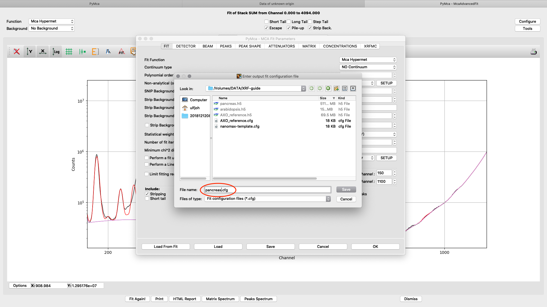 Save the configuration to a new file name (here pancreas.cfg). Close the dialog and the McaAdvancedFit window.